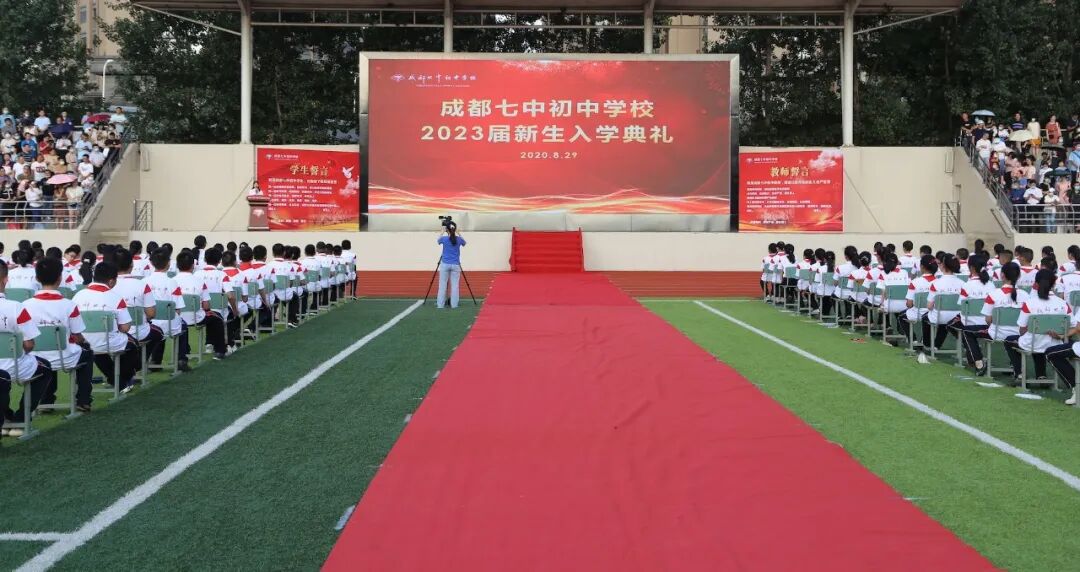 2020年8月29日,成都七中初中学校2023届新生入学典礼满载着师生和家长的期待,在两校区运动场隆重开启。学校全体行政、两校区家委会理事长及2023届全体师生出席本次入学盛典,共同见证孩子们在七初的崭新出发。