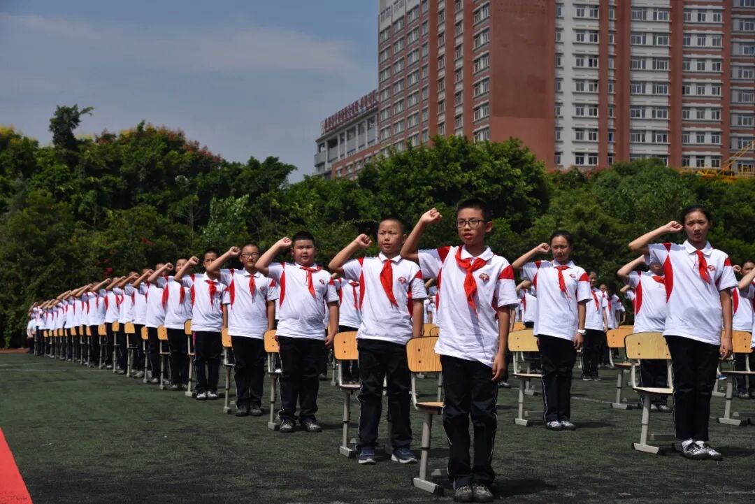 面对老师们的郑重承诺,孩子们也用少先队员最庄严的队礼向老师们行拜师礼。