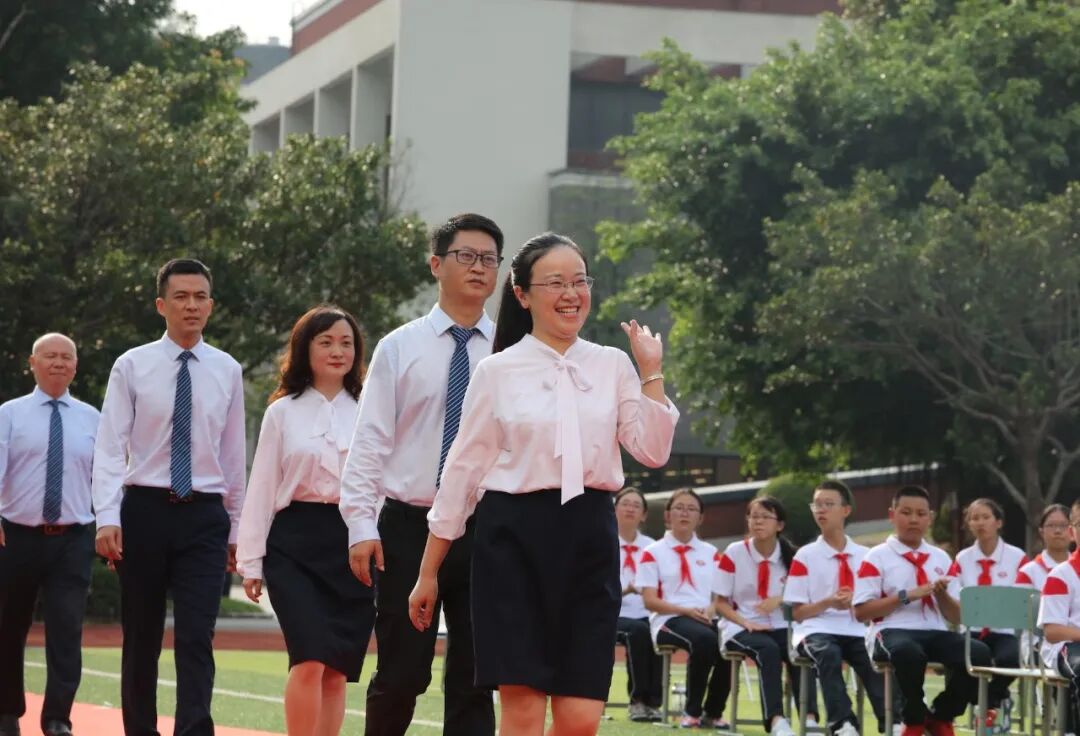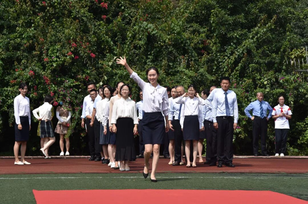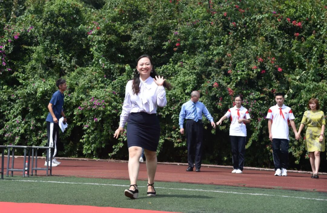 满怀喜悦的心情,学校全体行政在李笑非校长的带领下上场。