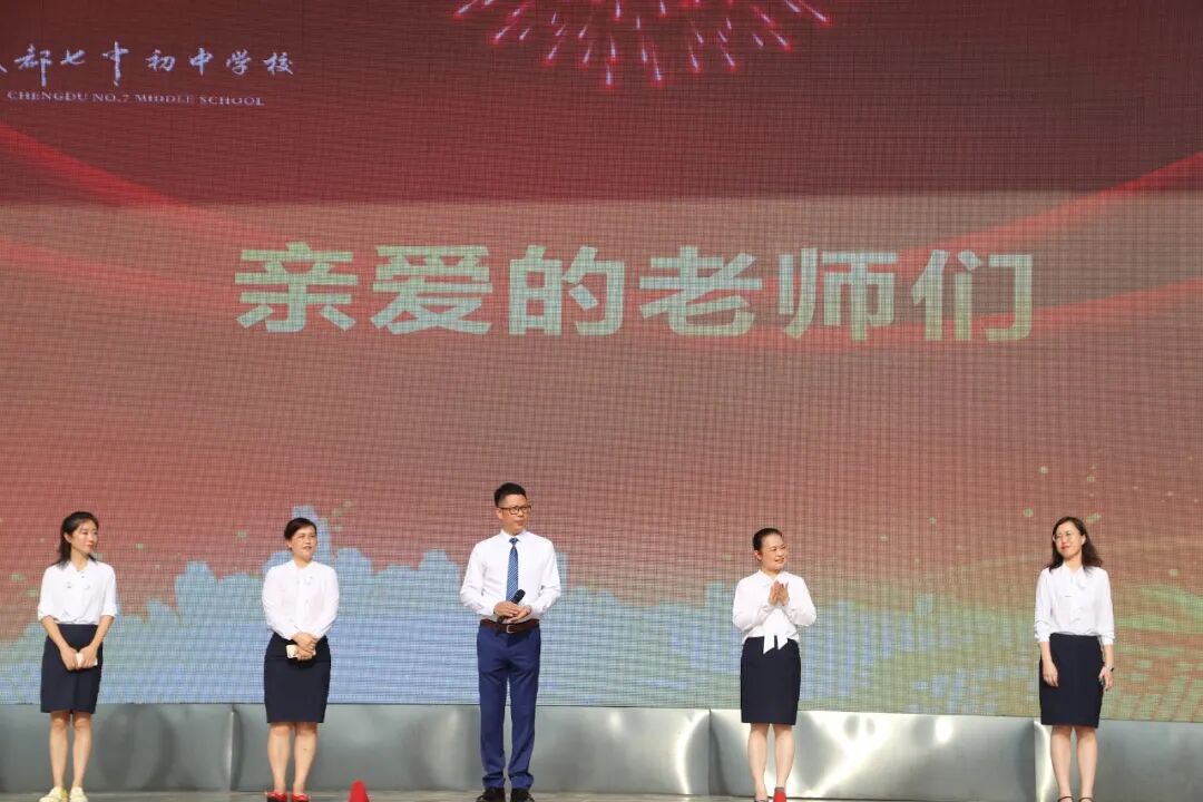孩子们全程用热烈的掌声表达着他们对老师们发自内心的尊敬与期待。班主任团队代表全体教师依次送上了对孩子们未来三年的深切祝福。相信在2023届教师团队的带领下,2023届的孩子们将努力奋进,在七初遇见最美的自己!