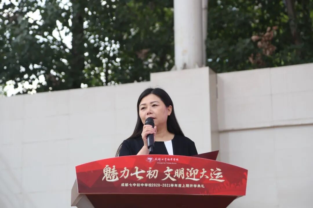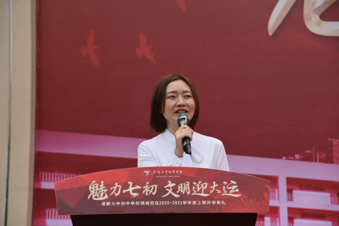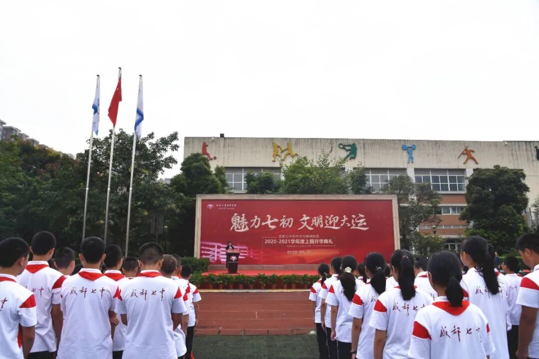 此次开学典礼正值中国举办的第三次世界大学生夏季运动会——成都大运会进行之时。李校长号召七初全体师生用和谐包容、智慧诚信、务实创新的蓉城精神和实际行动为成都代言、为中国添彩。同时,也希望七初学子们登高时目及远方,奋斗时心系家国,收获时不忘来路,拥抱青春,逐梦未来!