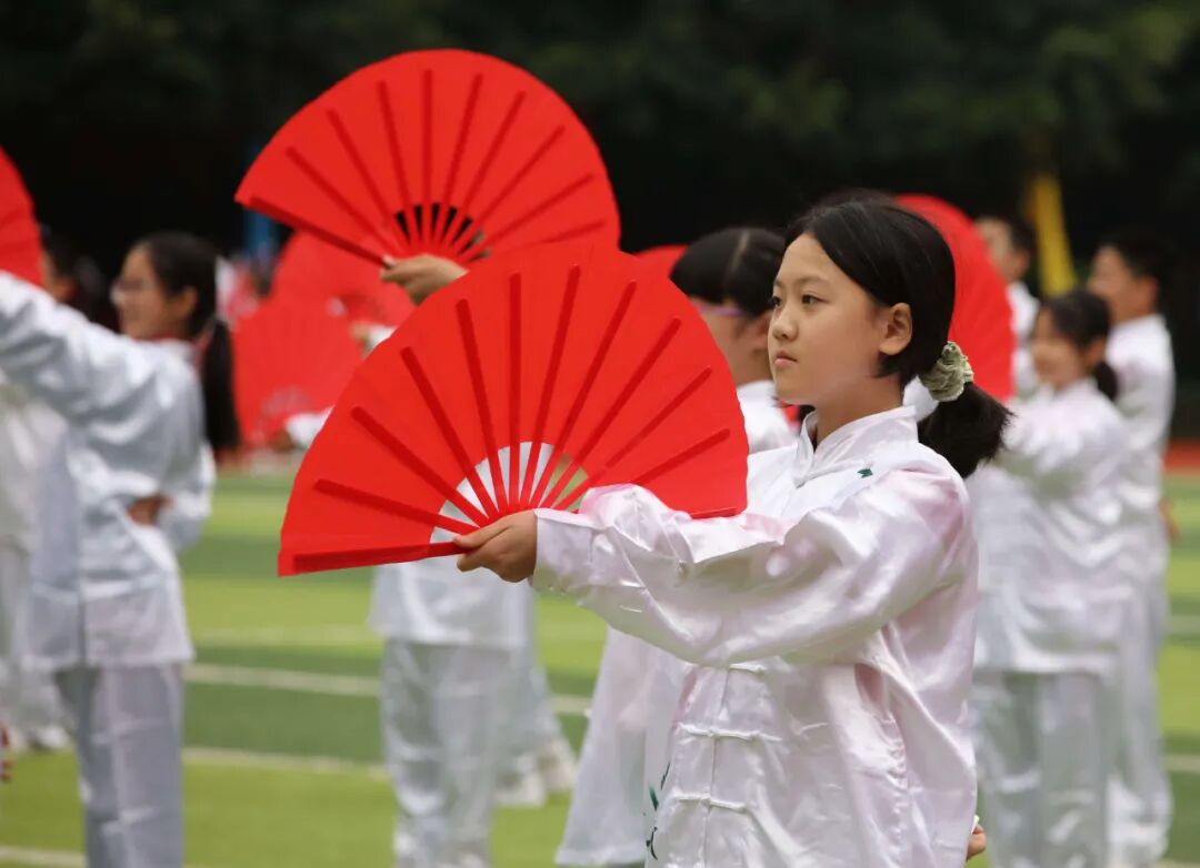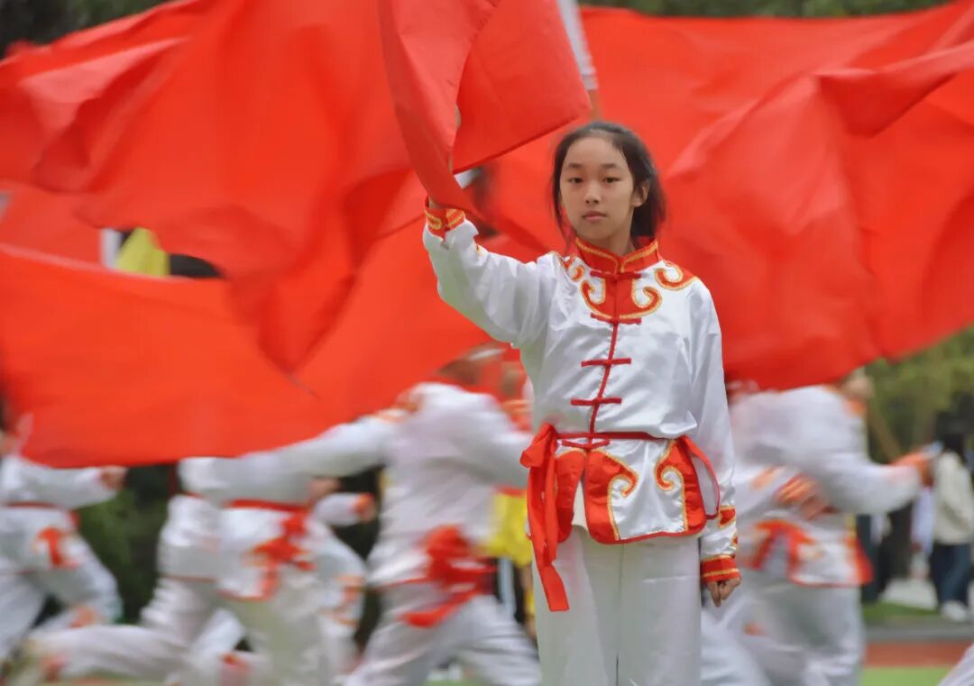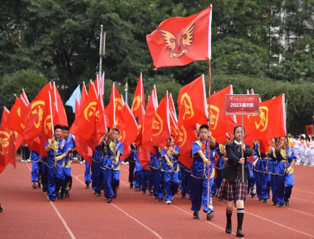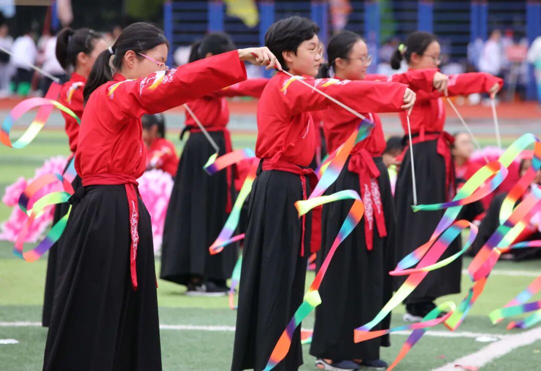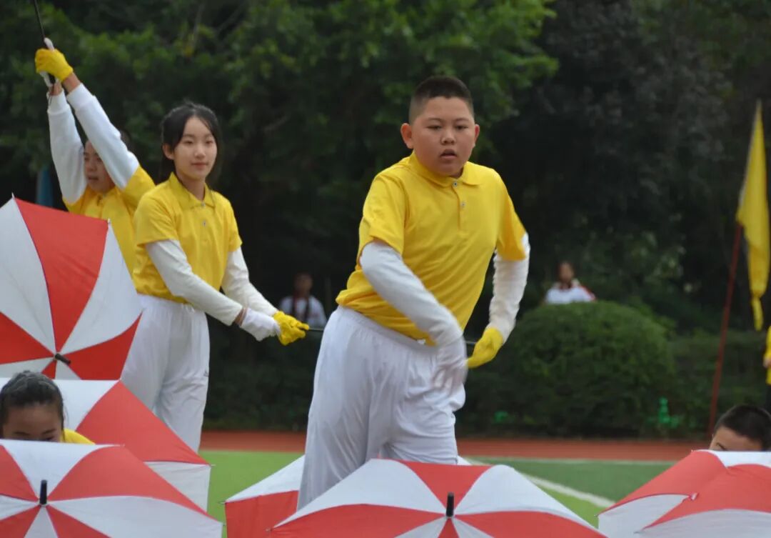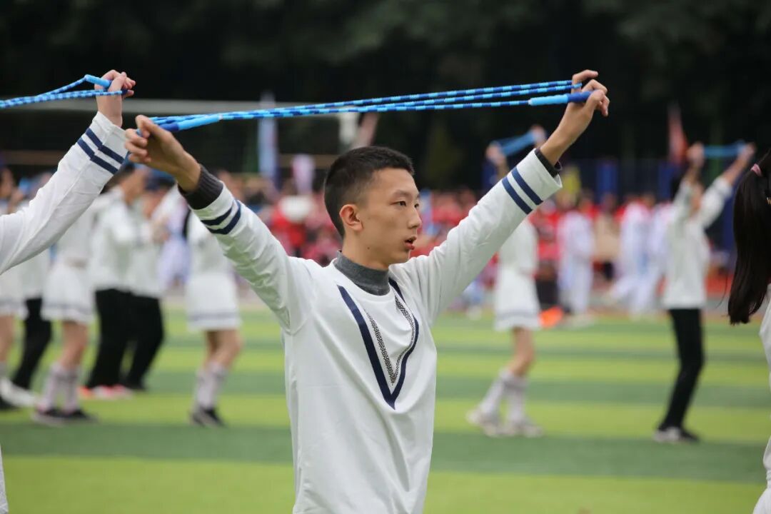 这里是激情奔放的赛场,更是风采展示的舞台。搏击操、轻机械花棍、哑铃操、花球、绳操、花球、牡丹花伞、武术、双面伞......不仅是视觉的盛宴,更是阳刚正气与柔情之怀的交融。两个校区的同学们以年级、班级为单位入场进行展演。一个个方阵个性鲜明,独具匠心,绽放无限魅力。