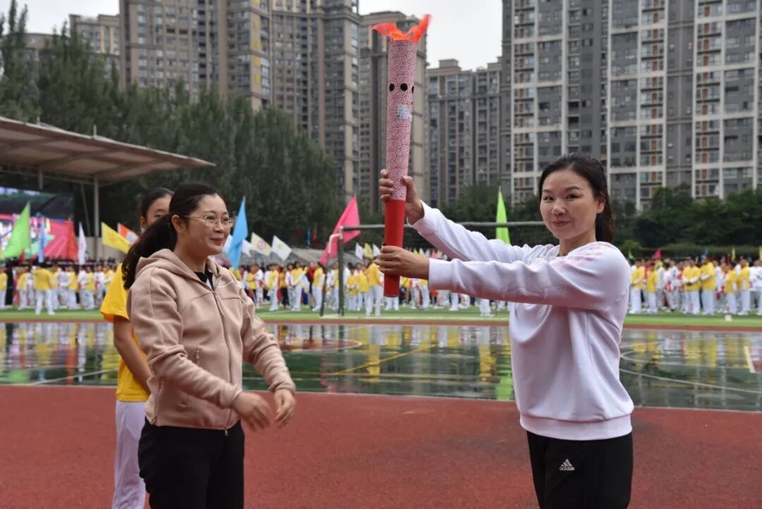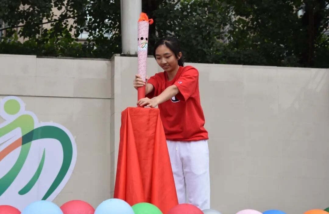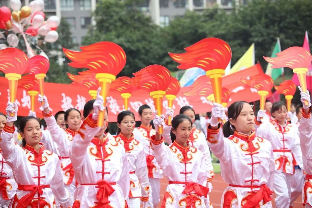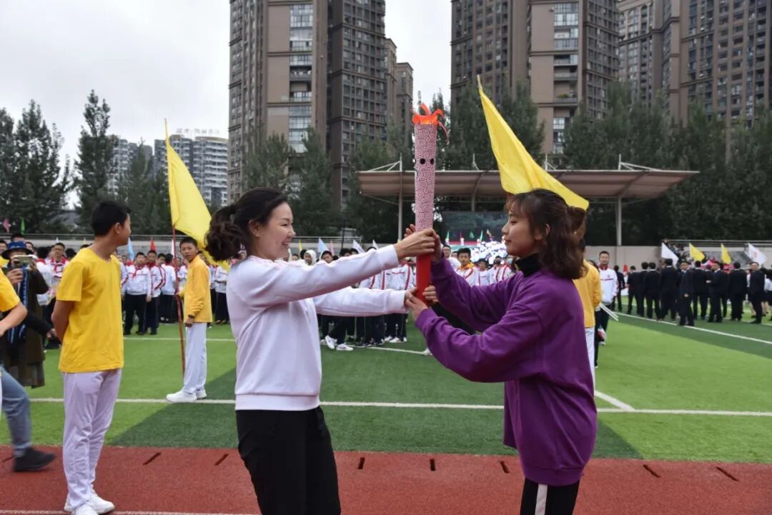 火炬,是引领者,领跑七初学子对更高、更快、更强的追逐,也传递七初的文化血脉,把“审是迁善 模范群伦”融入每个人的心中。成都七中初中学校党总支书记、校长李笑非老师点燃火炬。火炬经两校区教师代表卿立华老师、黄美琼老师、钟华老师、江缘老师、曹登勇老师、韩帅老师逐棒接力,最后由上届校运会女子跳远纪录的保持者2021届1班马静怡同学完成最后一棒。传递火炬仪式预示我校运动会要达到一个新的境界,也预示着成都七中初中学校一校两区的发展,将达到新的高度。