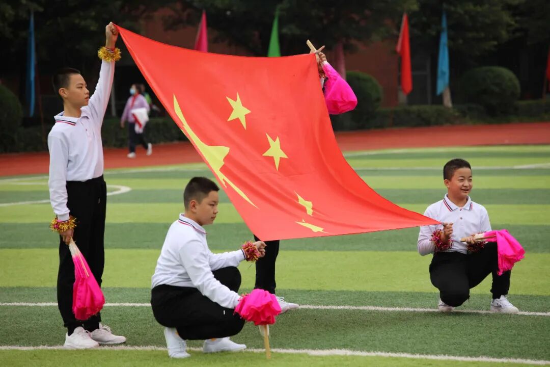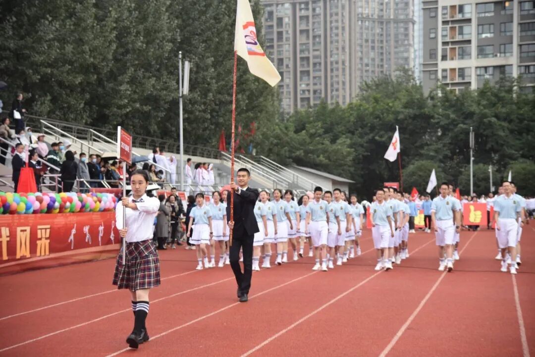巍然升起的五星红旗,迎风招展的校旗,缓缓升起的本届运动会会旗,见证着运动员们矫健的身姿,拼搏的背影。
