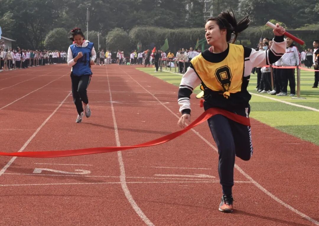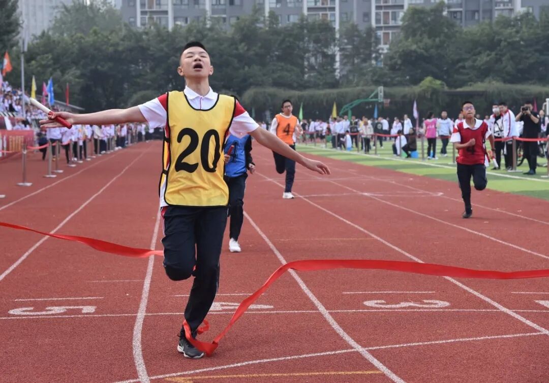 径赛的跑道上,无数运动员挥洒汗水,拼尽全力为班级挣得荣誉。发令枪响,终点线便是你们的目标,你们奔跑着、拼搏着,即使在冲过终点后不慎摔跤,也毫不犹豫。你们,不仅有搏击长空的勇气,更有战胜自我的决心和意志力!