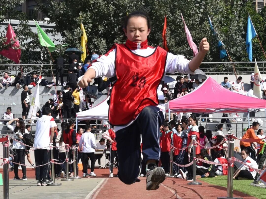 跳高、跳远、实心球、坐位体前屈…田赛项目也各个精彩纷呈。大地是运动员们的舞台,你们在上面呈现出了体育的美、人格的美!一次次全力跳起去挑战新高度;一遍遍用力掷球来创造新奇迹;一回回伸出双手去完成新目标;一轮轮拼尽全力来挑战新纪录!你们是运动场上靓丽的风景,更是同学心目中无与伦比的存在!