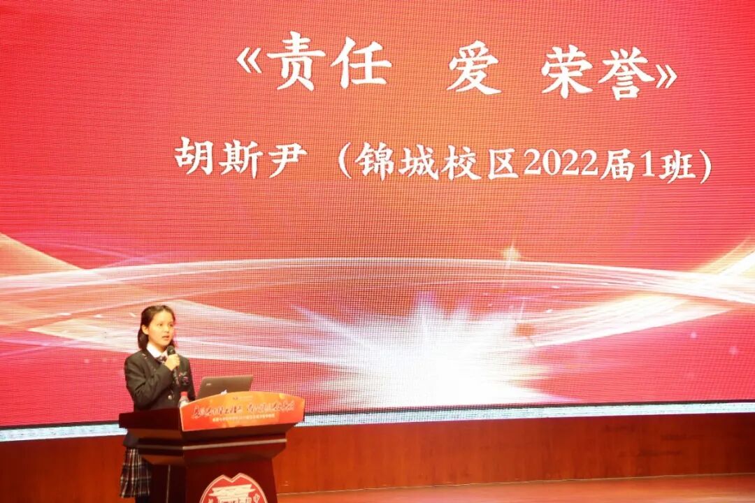 锦城校区2022届1班胡斯尹《责任 爱 荣誉》,肩负责任与爱,向荣誉进发。
