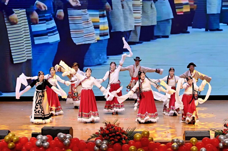学校舞蹈团的同学以翩跹身姿勾勒山河画卷,旋转的裙摆似江河奔涌,在流动的队形中展现了土地的丰饶与生命的坚韧,那是对脚下大地最深情的告白。
